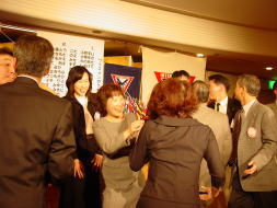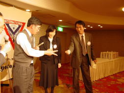 2003年の幕が明けた1月11日、ここ宝ヶ池プリンスホテルにおいて、新年例会が開催されました。 世界情勢不安、日本も例外になく、揺れ動いた一昨年でした。 そのような去年を忘れ吹き飛ばすような新年例会でありました。 定刻6:30会長の開会点鐘、新年の挨拶、会長方針「変化」を交えての言葉でした。 今年、あと半期、プリンスクラブにどのような変化が起こるか、メンバー楽しみに待っていますよ。 会長よろしく。 もう一つプリンスクラブにとって嬉しいことが、ありました。 古川安雄君の入会式です。 ニューメンバー、新しいお顔が、仲間に加わって頂けると、メンバーも気分はおニューに、なれますね。 古河君、期待しています、楽しく頑張って下さい。 会食後、新年例会に相応しく、テーブル対抗ゲームで盛り上がりました。 タクシーチケット争奪、ホテルの食事券争奪と、今日は、ワイズメンズクラブの例会と言えども、新年おめでとう例会、無礼講です。(余談ですがメネットのテーブルの強かったこと)盛り上がったのは、言うまでもありません。 今年もまだまだ解決できない難問が世界中を取り巻いています。 少しでも、ここワイズから、世の中に「変化」を与えて行こうじゃありませんか。 |